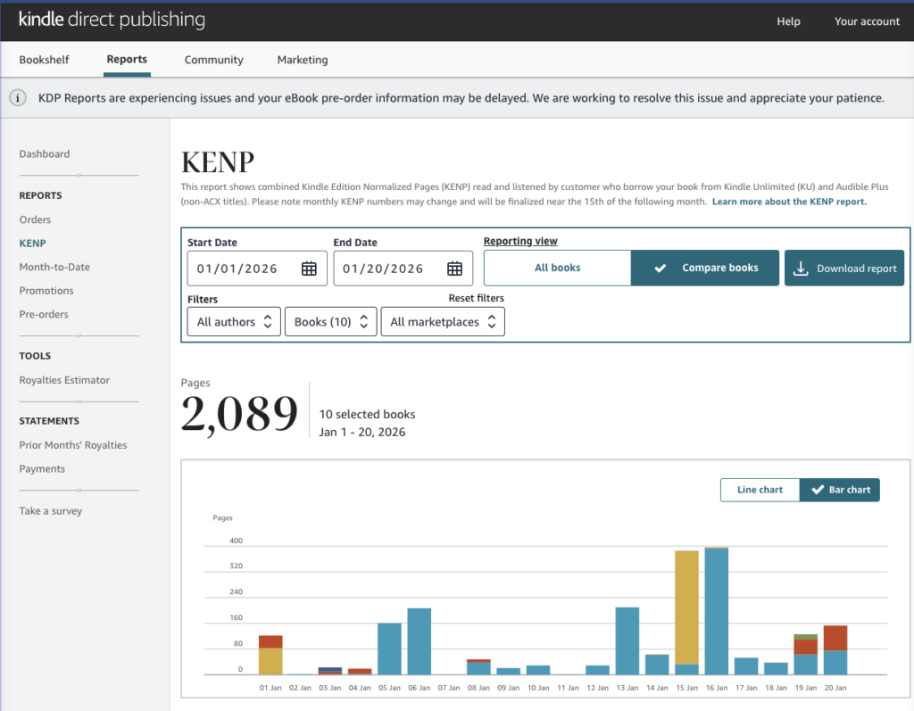 Fluctuations to watch: Sudden jumps might come from price increases, boxed sets, or KU payouts. Drops? Could be returns, fewer KU reads, or loss of promo momentum.