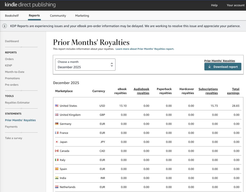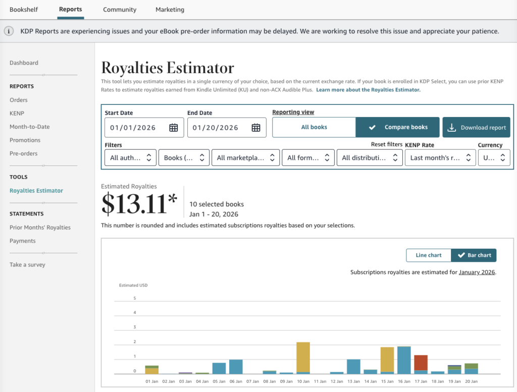 Curious about international growth? Filter your dashboard by marketplace. If your books are unexpectedly selling in Germany or Australia, consider: